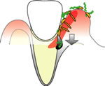 A炎症を起こした歯ぐきの裏側にどんどんたまっていき、奥でさらに炎症を起こします。