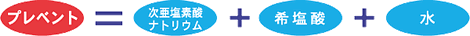 『プレベント』は、食品添加物として広く使われている「次亜塩素酸ナトリウム」と