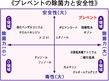 C領域:除菌力小だが安全性大(従来の除菌領域)